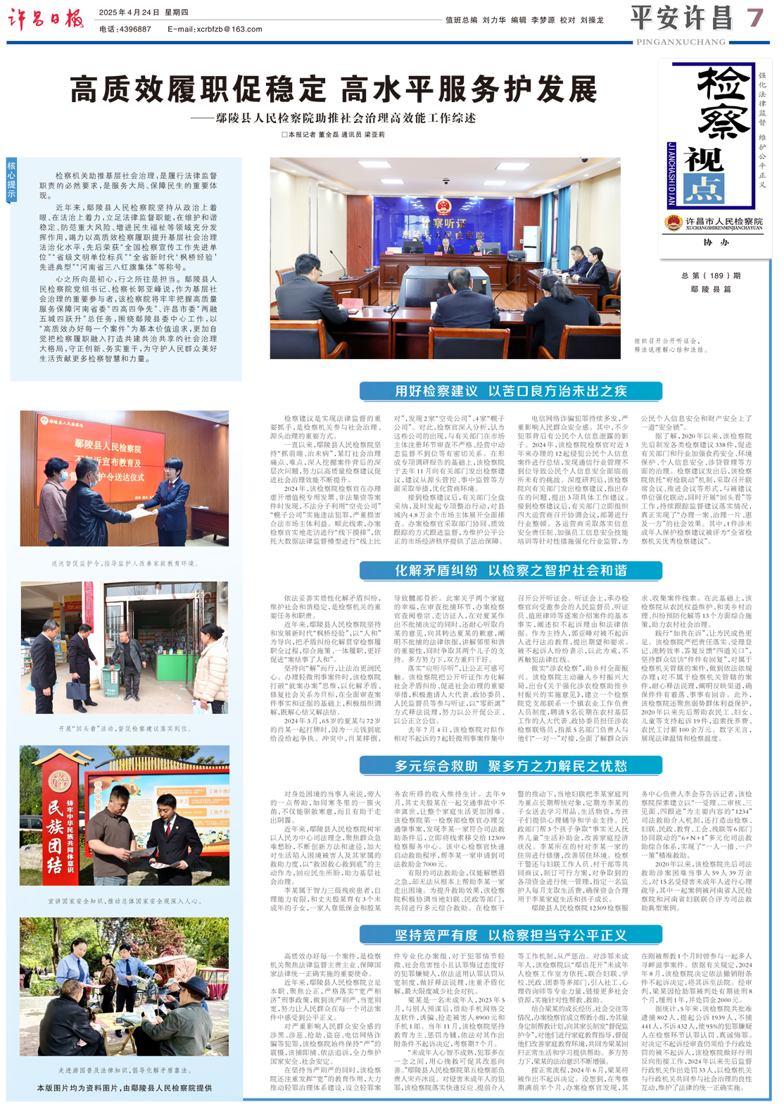 近年来,鄢陵县人民检察院坚持和发展新时代“枫桥经验”,以“人和”为导向,把矛盾纠纷化解贯穿检察履职全过程,综合施策、一体履职,更好促进“案结事了人和”。