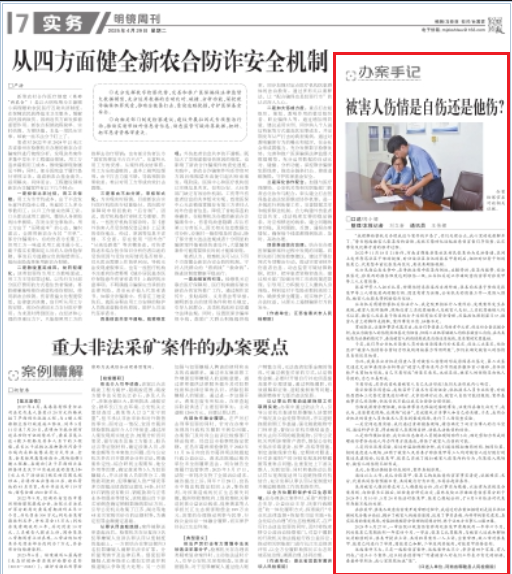 4月29日《检察日报》7版:《被害人伤情是自伤还是他伤?》